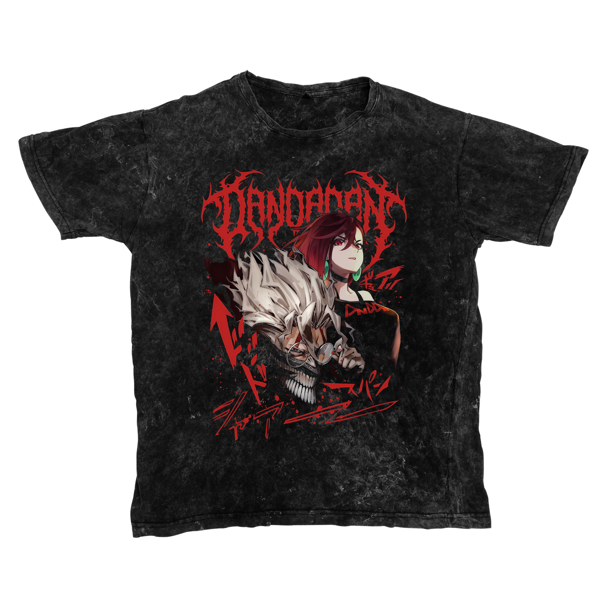 Polo Acid Wash inspirado en los personajes Okarun y Momo de la serie DanDaDan.