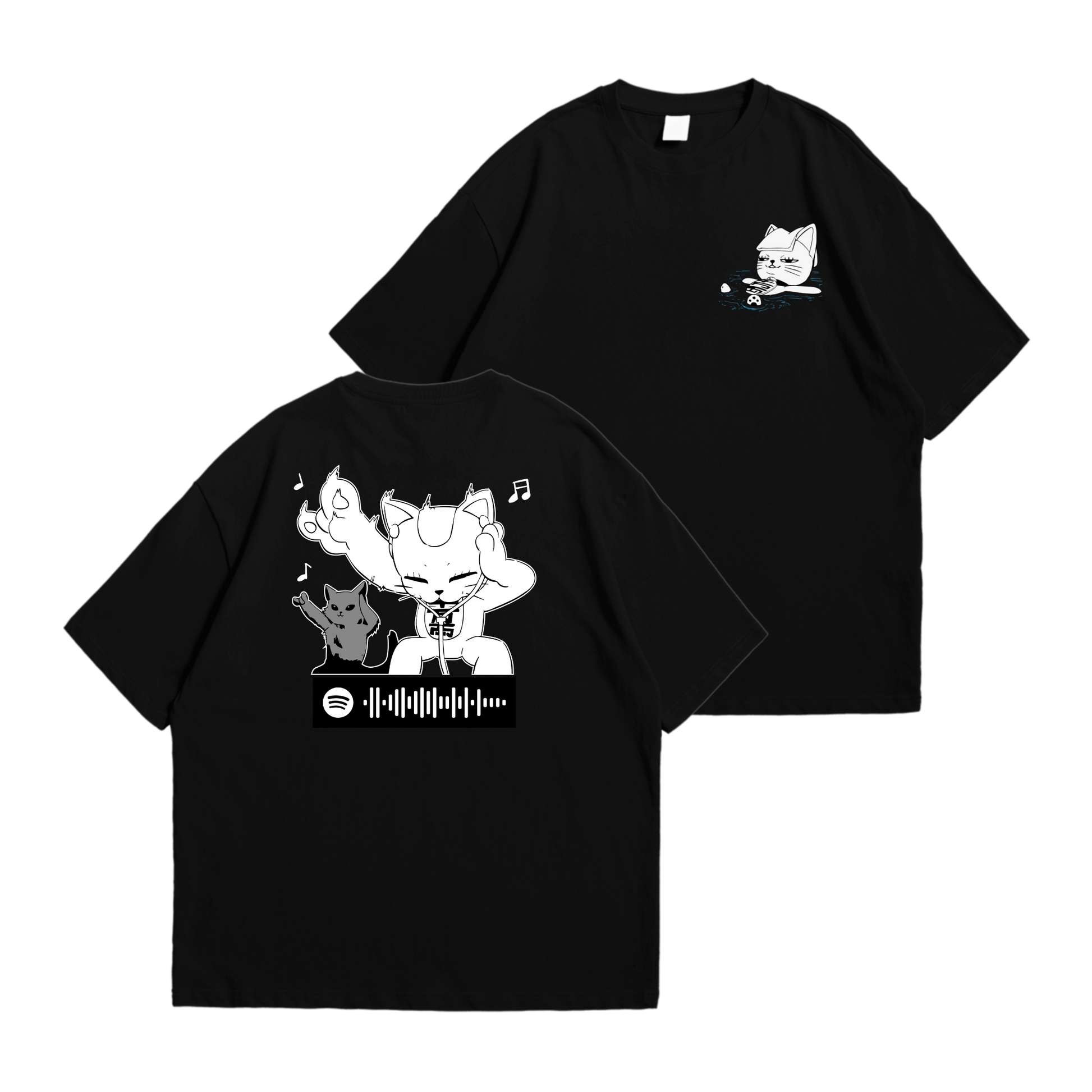 Polo inspirado en el personaje Turbo Gata utilizando un código de Spotify (Opening del anime) de la serie DanDaDan.