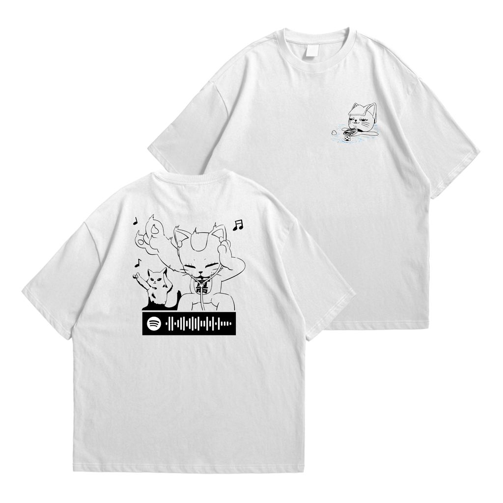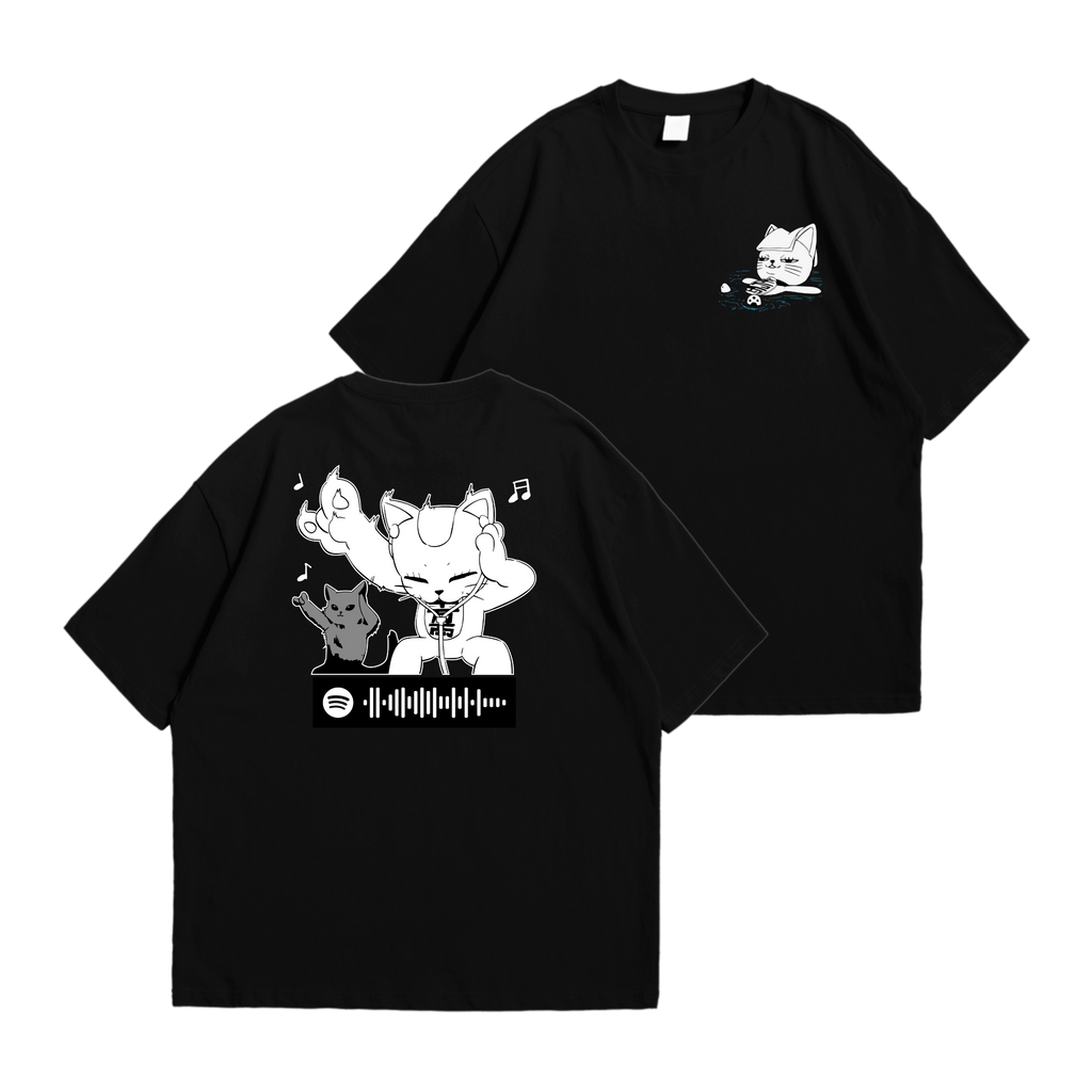 Polo inspirado en el personaje Turbo Gata utilizando un código de Spotify (Opening del anime) de la serie DanDaDan.