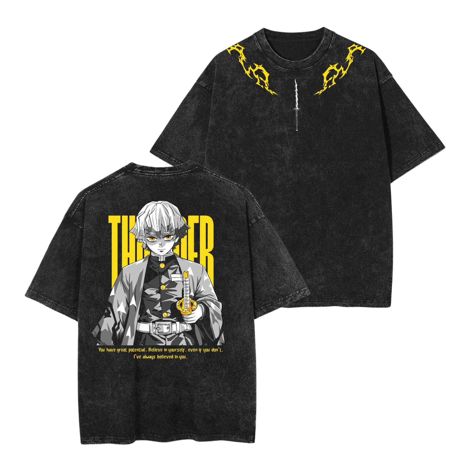 Polo inspirado en el personaje Zenitsu Agatsuma de la serie Kimetsu No Yaiba (Demon Slayer).